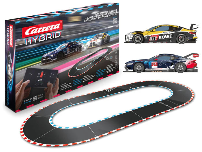 🏁 Mit dem Carrera Hybrid HyperDrive Fury genießen Sie ein einzigartiges Erlebnis, das Multiplayer, künstliche Intelligenz und erweiterte Anpassungsmöglichkeiten vereint. Bis zu 16 Spieler können gleichzeitig gegeneinander antreten, wobei das Fahrverhalten der Autos (Geschwindigkeit, Grip, Bremsverhalten) präzise eingestellt werden kann. Realistische Modelle wie der BMW M4 GT3 und der Ford Mustang sorgen für noch mehr Immersion bei spektakulären Rennen auf einer über 4 Meter breiten Strecke.