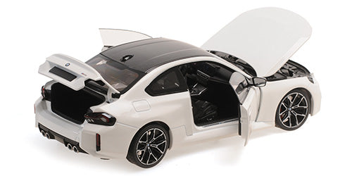 🏁 La BMW M2 G87 2023 Minichamps à l’échelle 1/18 en finition blanche est une miniature de collection haut de gamme qui met en lumière le design agressif et moderne de la dernière génération M2. Fabriquée en diecast (métal injecté) avec un excellent niveau de détail, elle reproduit fidèlement les lignes musclées et les proportions du modèle réel. Sa teinte blanc brillant souligne parfaitement les contrastes et les éléments sportifs, en faisant une pièce incontournable pour les passionnés de BMW.
